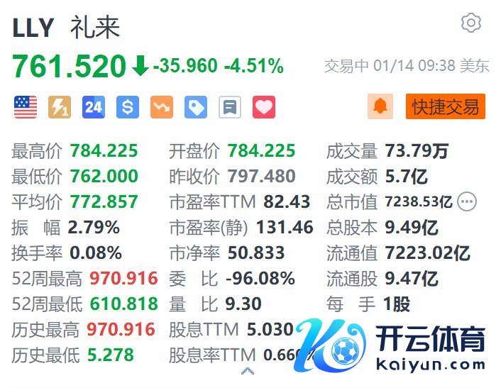 格隆汇1月14日|礼来(LLY.US)跌超4.5%,报761.52好意思元。音讯面上,礼来公司公布,展望2024年第四季度营收将达到约135亿好意思元,较公司近期发布的预期区间低端少约4亿好意思元,分析师预期为139.3亿好意思元。该公司展望2024年全年营收将达到约450亿好意思元,较公司此前预期区间中值提高40亿好意思元,分析师预期为454.7亿好意思元。另外,礼来展望2025年营收将在580亿至610亿好意思元之间,分析师预期为584.4亿好意思元。